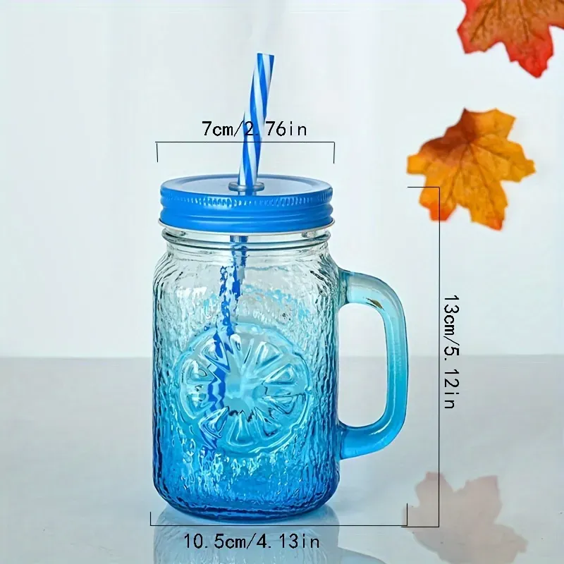 • 500ML Mason Mug With Handle & Straw