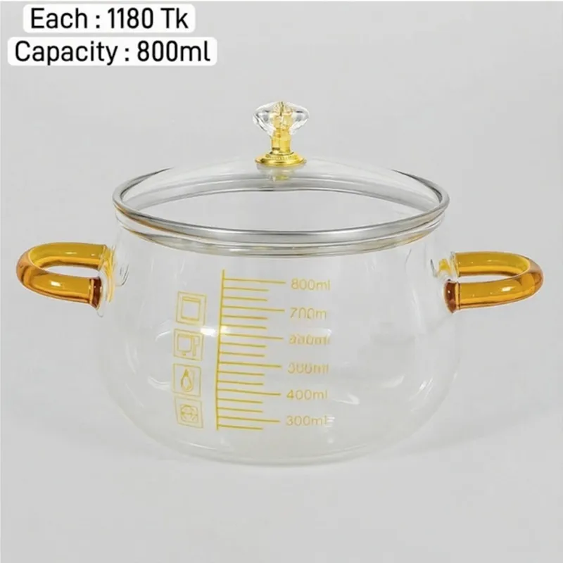 800ml Borosilicate Binaural Heat & Fire Proof Scaled Transparent Household Imported Glass Casserole Pot