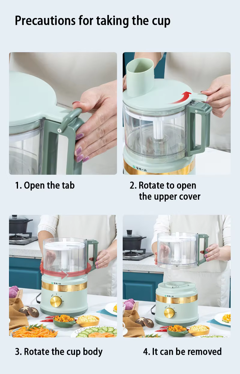 - Blades: Shredded, Sliced, Stuffed, Grinding, Kneading